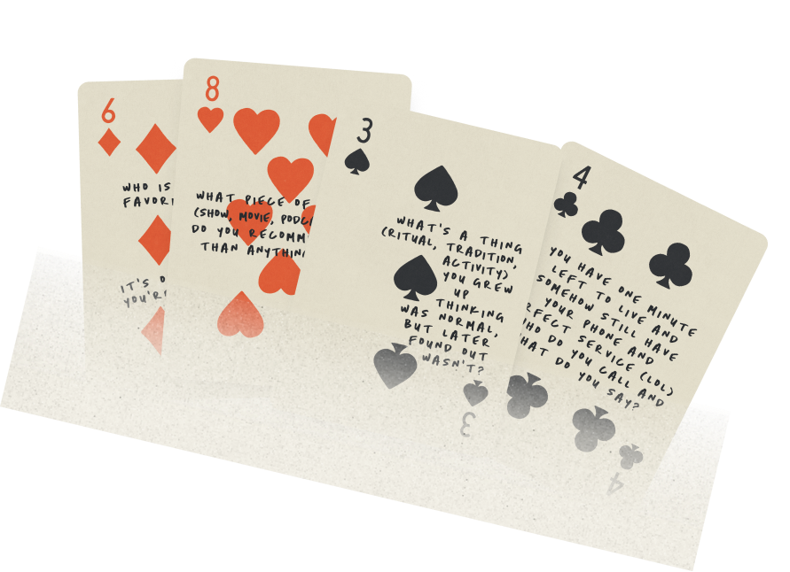 “I love the questions on the cards. I'm an introvert, so the questions really help me break through the internal struggle of how to keep a conversation going.”
